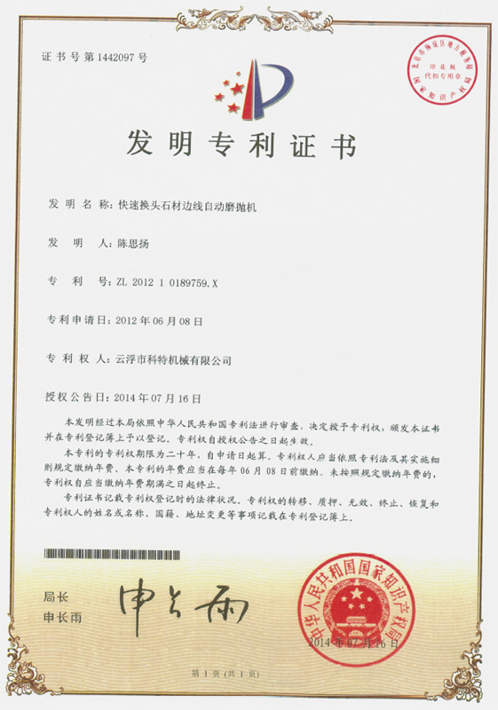 企業(yè)組建了“云浮市石材機械裝備工程技術(shù)研究開發(fā)中心”,并與高校和科研院所密切合作,致力于光機電一體化產(chǎn)品的研發(fā)、生產(chǎn)、銷售和服務(wù)。主要產(chǎn)品有框架鋸、全自動連續(xù)磨拋機、橋式自動切割機、全自動仿形石線機、數(shù)控金剛石繩鋸、裁切機等。產(chǎn)品具有自動化程度高、加工精度高和生產(chǎn)效率高等特點。產(chǎn)品除國內(nèi)銷售外,還出口到歐美、東南亞、韓國、印度、中東、非洲、俄羅斯、澳大利亞等國家和地區(qū),深受用戶好評!皹蚴阶詣忧懈顧C”被認(rèn)定為廣東省高新技術(shù)產(chǎn)品,擁有發(fā)明專利1項、實用新型專利1項。